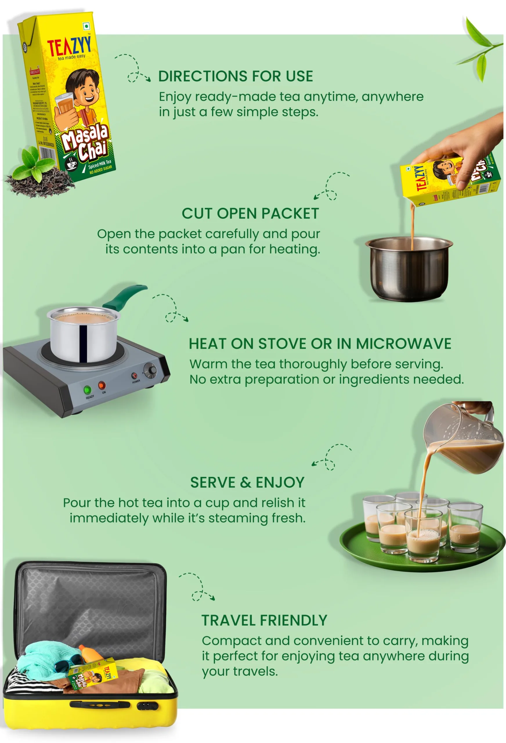 Cut, heat, sip – your chai in just 2 minutes.