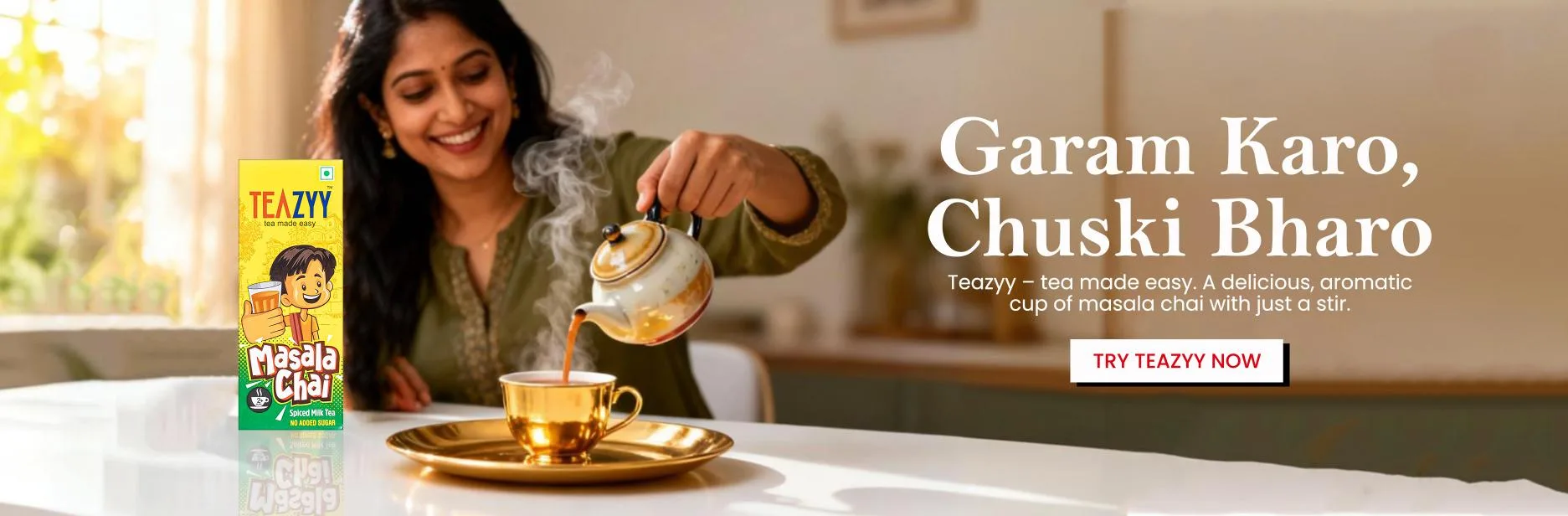 Fresh milk, premium black tea, and handpicked spices come together in every pack of Teazyy—bringing you the true taste of masala chai without the hassle.
